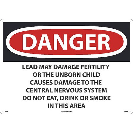 OSHA Sign D36. Legend: Danger Lead May Damage Fertility Or The Unborn Child Causes Damage To The Central Nervous System Do Not Eat, Drink Or Smoke In This Area