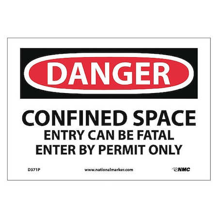 NMC D371P OSHA Sign, Legend "DANGER - CONFINED SPACE ENTRY CAN BE FATAL ENTER BY PERMIT ONLY", 10" Length x 7" Height, Pressure Sensitive Vinyl, Red/Black on White