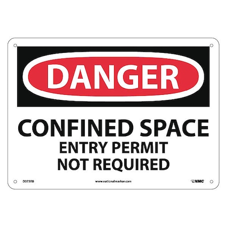 NMC D373RB OSHA Sign, Legend "DANGER - CONFINED SPACE ENTRY PERMIT NOT REQUIRED", 14" Length x 10" Height, Rigid Plastic, Red/Black on White