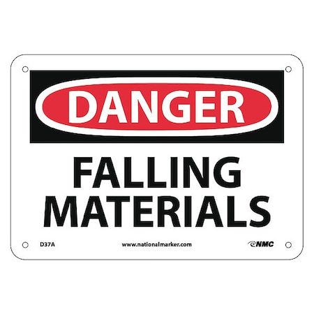 NMC D37A OSHA Sign, Legend "DANGER - FALLING MATERIALS", 10" Length x 7" Height, Aluminum, Black/Red on White