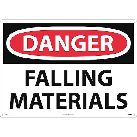 NMC D37AD OSHA Sign, Legend "DANGER - FALLING MATERIALS", 28" Length x 20" Height, Aluminum, Black/Red on White
