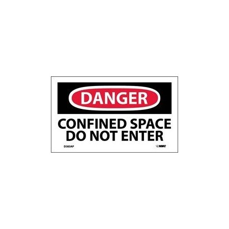 NMC D383A OSHA Sign, Legend "DANGER - CONFINED SPACE DO NOT ENTER", 10" Length x 7" Height, Aluminum, Red/Black on White