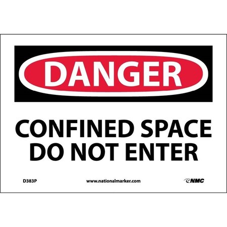 NMC D383P OSHA Sign, "DANGER CONFINED SPACE DO NOT ENTER", 10" Width x 7" Height, Pressure Sensitive Vinyl, Black/Red On White