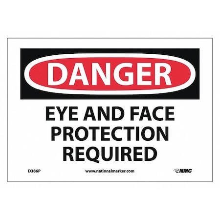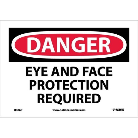 NMC D386P DANGER - EYE AND FACE PROTECTION REQUIRED Sign - 10 in. x 7 in. PS Vinyl Danger Sign, Black/White Text on White/Red Base