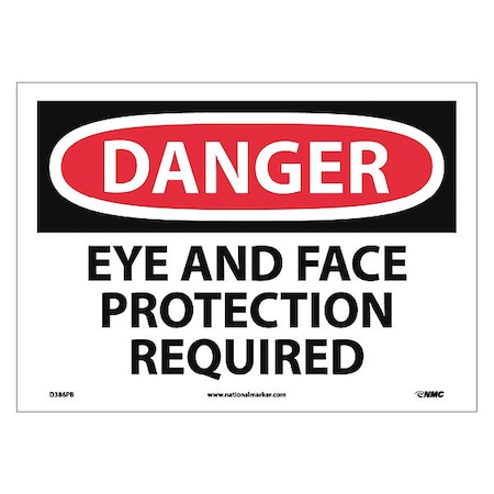 NMC D386PB DANGER - EYE AND FACE PROTECTION REQUIRED Sign - 14 in. x 10 in. PS Vinyl Danger Sign, Black/White Text on White/Red Base