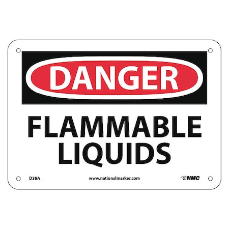 NMC D38A OSHA Sign, Legend "DANGER - FLAMMABLE LIQUIDS", 10" Length x 7" Height, Aluminum, Black/Red on White
