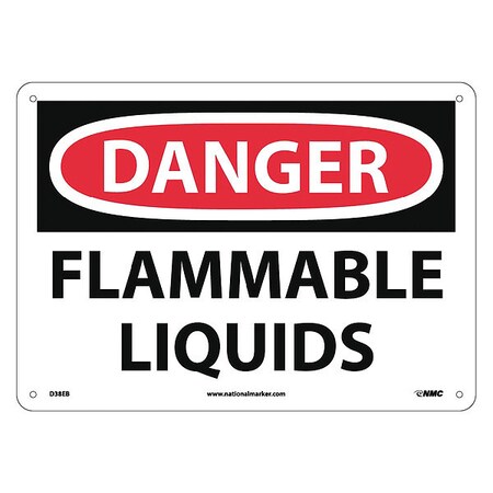 NMC D38EB OSHA Sign, Legend "DANGER - FLAMMABLE LIQUIDS", 14" Length x 10" Height, Fiberglass, Black/Red on White