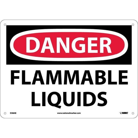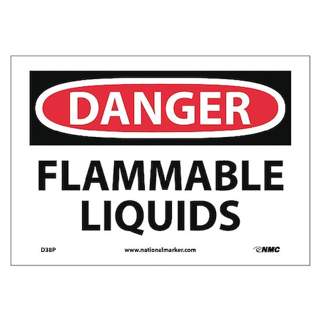 NMC D38P OSHA Sign, Legend "DANGER - FLAMMABLE LIQUIDS", 10" Length x 7" Height, Pressure Sensitive Vinyl, Black/Red on White