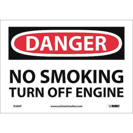 NMC D396P OSHA Sign, Legend "DANGER - NO SMOKING TURN OFF ENGINE", 10" Length x 7" Height, Pressure Sensitive Vinyl, Black/Red on White