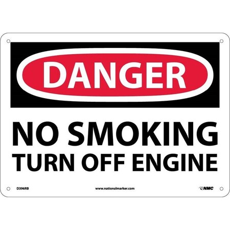 NMC D396PB OSHA Sign, Legend "DANGER - NO SMOKING TURN OFF ENGINE", 14" Length x 10" Height, Pressure Sensitive Vinyl, Black/Red on White
