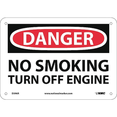 NMC D396R OSHA Sign, Legend "DANGER - NO SMOKING TURN OFF ENGINE", 10" Length x 7" Height, Rigid Plastic, Black/Red on White
