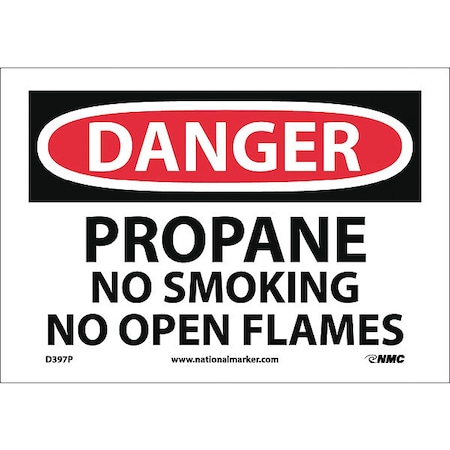 NMC D397P OSHA Sign, Legend "DANGER - PROPANE NO SMOKING NO OPEN FLAME", 10" Length x 7" Height, Pressure Sensitive Vinyl, Black/Red on White