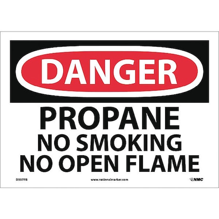 NMC D397PB OSHA Sign, Legend "DANGER - PROPANE NO SMOKING NO OPEN FLAME", 14" Length x 10" Height, Pressure Sensitive Vinyl, Black/Red on White