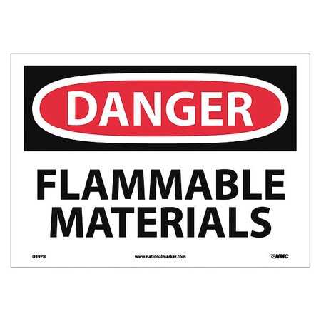 NMC D39PB OSHA Sign, Legend "DANGER - FLAMMABLE MATERIALS", 14" Length x 10" Height, Pressure Sensitive Vinyl, Black/Red on White