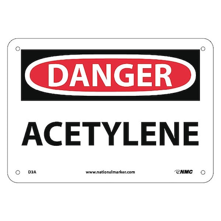 NMC D3A OSHA Sign, Legend "DANGER - ACEYTLENE", 10" Length x 7" Height, 0.040 Aluminum, Black/Red on White