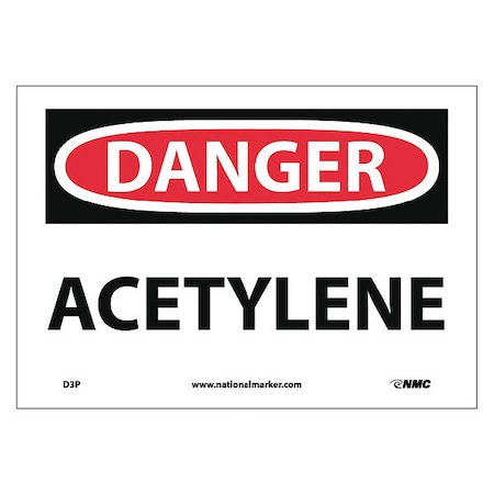 NMC D3P OSHA Sign, Legend "DANGER - ACETYLENE", 10" Length x 7" Height, Pressure Sensitive Adhesive Vinyl, Black/Red on White