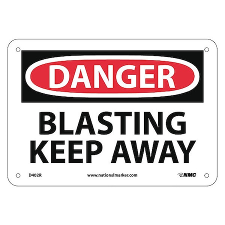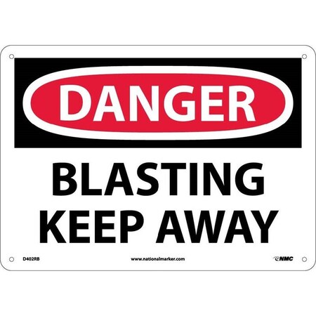 NMC D402R OSHA Sign, Legend "DANGER - BLASTING KEEP AWAY", 10" Length x 7" Height, Rigid Plastic, Red/Black on White