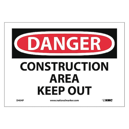 NMC D404P DANGER - CONSTRUCTION AREA KEEP OUT Sign - 10 in. x 7 in. PS Vinyl Danger Signage, Black/White Text on White/Red Base