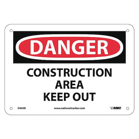 NMC D404R DANGER - CONSTRUCTION AREA KEEP OUT Sign - 10 in. x 7 in. Rigid Plastic Danger Signage, Black/White Text on White/Red Base