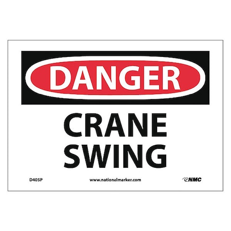 NMC D405P OSHA Sign, Legend "DANGER - CRANE SWING", 10" Length x 7" Height, Pressure Sensitive Vinyl, Black on White