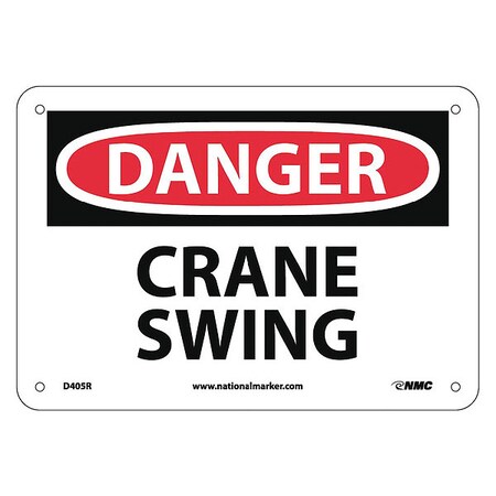 NMC D405R OSHA Sign, Legend "DANGER - CRANE SWING", 10" Length x 7" Height, Rigid Plastic, Black on White