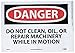 | Feature | Header "DANGER" and legend "DO NOT CLEAN, OIL, OR REPAIR MACHINERY WHILE IN MOTION" |