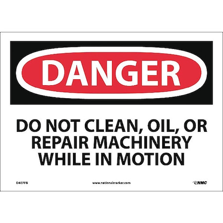 NMC D407PB OSHA Sign, Legend "DANGER - DO NOT CLEAN, OIL, OR REPAIR MACHINERY WHILE IN MOTION", 14" Length x 10" Height, Pressure Sensitive Vinyl, Black on White