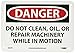 | Feature | Header "DANGER" and legend "DO NOT CLEAN, OIL, OR REPAIR MACHINERY WHILE IN MOTION" |