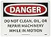 | Feature | Header "DANGER" and legend "DO NOT CLEAN, OIL, OR REPAIR MACHINERY WHILE IN MOTION" |