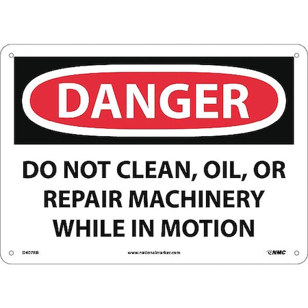 NMC D407RB OSHA Sign, Legend "DANGER - DO NOT CLEAN, OIL, OR REPAIR MACHINERY WHILE IN MOTION", 14" Length x 10" Height, Rigid Plastic, Black on White