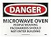 - Header "DANGER" and Legend "MICROWAVE OVEN PEOPLE WEARING PACEMAKERS SHOULD NOT ENTER BUILDING"