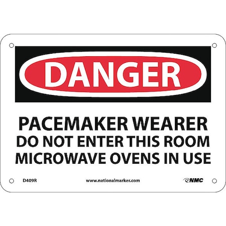 NMC D409R OSHA Sign, Legend "DANGER - PACEMAKER WEARER DO NOT ENTER THIS ROOM", 10" Length x 7" Height, Rigid Plastic, Black/Red on White
