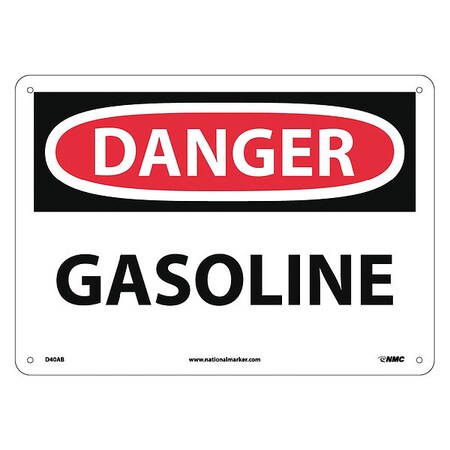 NMC D40AB OSHA Sign, Legend "DANGER - GASOLINE", 14" Length x 10" Height, Aluminum, Black/Red on White
