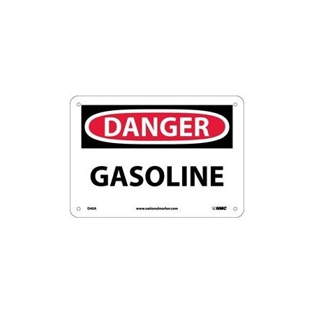 NMC D40P OSHA Sign, Legend "DANGER - GASOLINE", 10" Length x 7" Height, Pressure Sensitive Vinyl, Black/Red on White