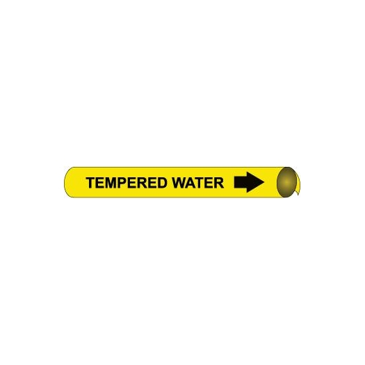 NMC D4104"Tempered Water" Precoiled Pipe Marker, Fits 3 3/8"-4 1/2" Pipe, Black/Yellow