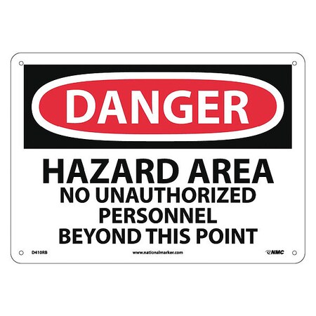 NMC D410R DANGER - HAZARD AREA - NO UNAUTHORIZED PERSONNEL BEYOND THIS POINT Signage - 14in. x 10in. Danger Signage with Black/White Text on White/Red Base, Rigid Plastic