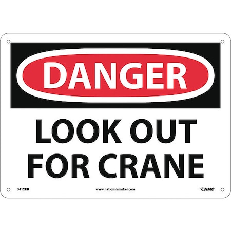 NMC D412RB OSHA Sign, Legend "DANGER - LOOK OUT FOR CRANE", 14" Length x 10" Height, Rigid Plastic, Black/Red on White