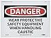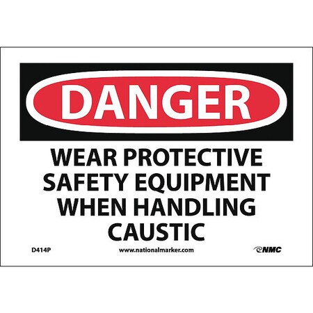 NMC D414P DANGER - WEAR PROTECTIVE SAFETY EQUIPMENT WHEN HANDLING CAUSTIC Signage - 10 in. x 7 in. PS Vinyl Danger Sign, Black/White on White/Red
