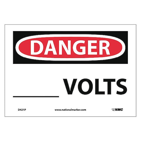 NMC D421P OSHA Sign, Legend "DANGER - ____ VOLTS", 10" Length x 7" Height, Pressure Sensitive Adhesive Vinyl, Black/Red on White