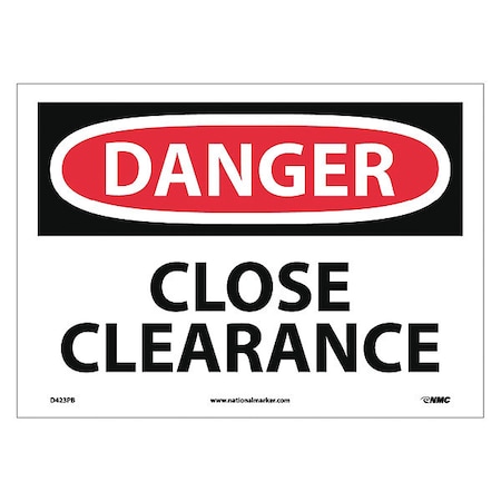 NMC D423PB OSHA Sign, Legend "DANGER - CLOSE CLEARANCE", 14" Length x 10" Height, Pressure Sensitive Vinyl, Red/Black on White