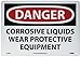 | Feature | Header "DANGER" and legend "CORROSIVE LIQUIDS WEAR PROTECTIVE EQUIPMENT" |