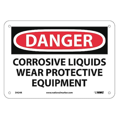 NMC D424R DANGER - CORROSIVE LIQUIDS WEAR PROTECTIVE EQUIPMENT Sign - 10 in. x 7 in. Rigid Plastic Danger Signage, Black/White on White/Red