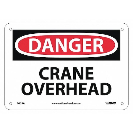 NMC D425A OSHA Sign, Legend "DANGER - CRANE OVERHEAD", 10" Length x 7" Height, Aluminum, Black on White