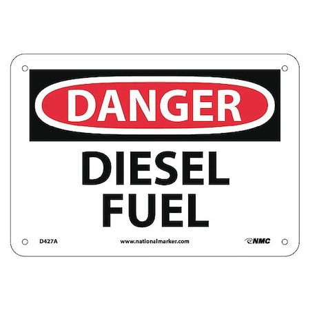 NMC D427A OSHA Sign, Legend "DANGER - DIESEL FUEL", 10" Length x 7" Height, Aluminum, Black on White