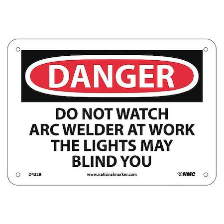 NMC D432R DANGER - DO NOT WATCH ARC WELDER AT WORK THE LIGHT MAY BLIND YOU Sign - 10 in. x 7 in. Rigid Plastic Danger Signage, Black/White on White/Red