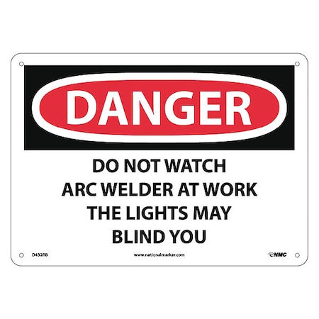 NMC D432RB DANGER - DO NOT WATCH ARC WELDER AT WORK THE LIGHT MAY BLIND YOU Sign - 14 in. x 10 in. Rigid Plastic Danger Signage, Black/White on White/Red