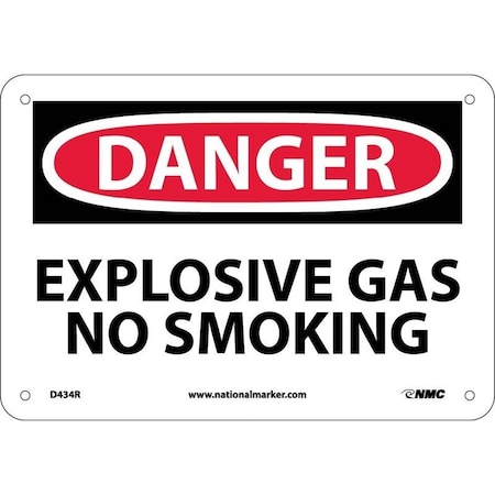 NMC D434P OSHA Sign, Legend "DANGER - EXPLOSIVE GAS NO SMOKING", 10" Length x 7" Height, Pressure Sensitive Vinyl, Black/Red on White
