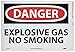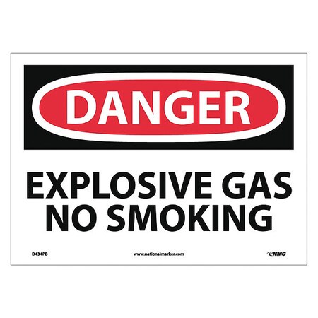 NMC D434PB OSHA Sign, Legend "DANGER - EXPLOSIVE GAS NO SMOKING", 14" Length x 10" Height, Pressure Sensitive Vinyl, Black/Red on White
