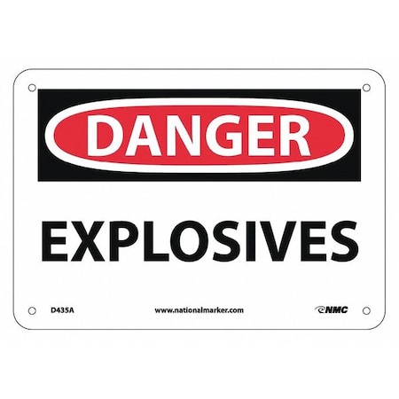 NMC D435A OSHA Sign, Legend "DANGER - EXPLOSIVES", 10" Length x 7" Height, Aluminum, Black/Red on White