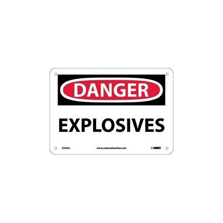 NMC D435P OSHA Sign, Legend "DANGER - EXPLOSIVES", 10" Length x 7" Height, Pressure Sensitive Vinyl, Black/Red on White